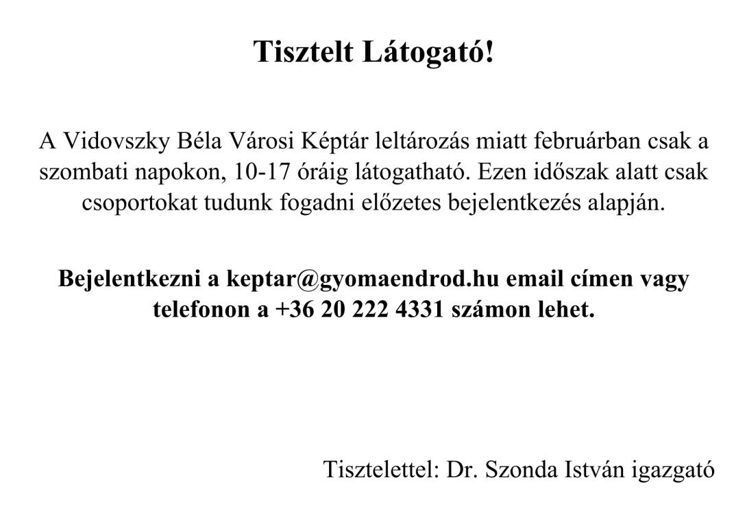 Vidovszky Béla Városi Képtár leltározás miatt nyitvatartás változás