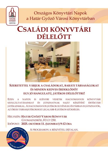 2025-ben ismét megrendezésre kerülnek az Országos Könyvtári Napok eseményei, amelyek 2025. október 6-12.
