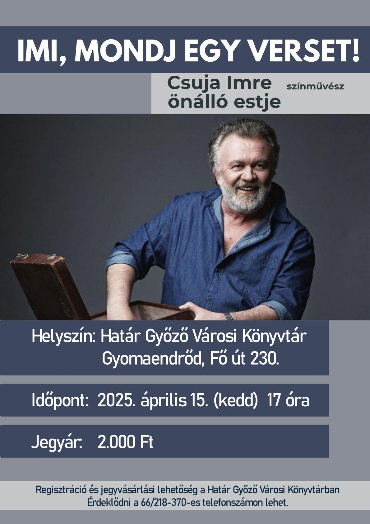 Az est előadója: Csuja Imre Jászai Mari-díjas magyar színművész, érdemes és kiváló művész.