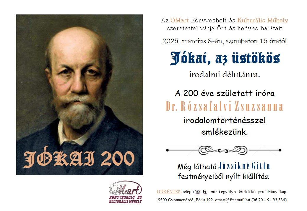 Az OMart Könyvesbolt és Kulturális Műhely szeretettel várja Önt és kedves barátait 2025. március 8-án szombaton, 15 órától a Jókai, az üstökös irodalmi délutánra.