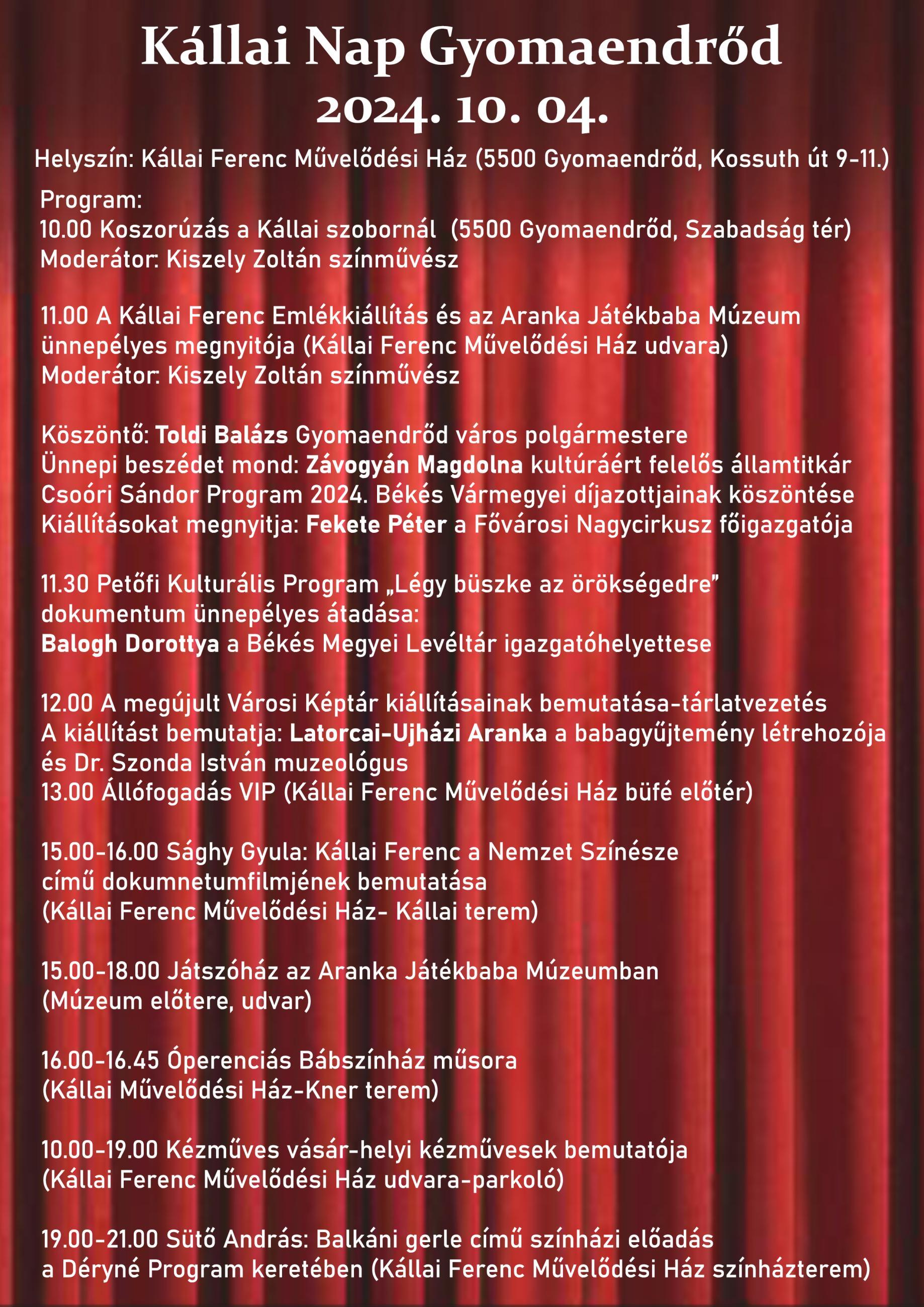 11:00 A Kállai Emlékkiállítás és az Aranka Játékbaba Múzeum ünnepélyes megnyitója