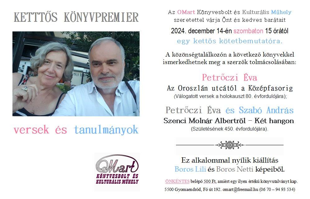 Az OMart Könyvesbolt és Kulturális Műhely szeretettel várja önt és kedves barátait 2024. december 14-én, szombaton 15 órától egy kettős kötetbemutatóra.
