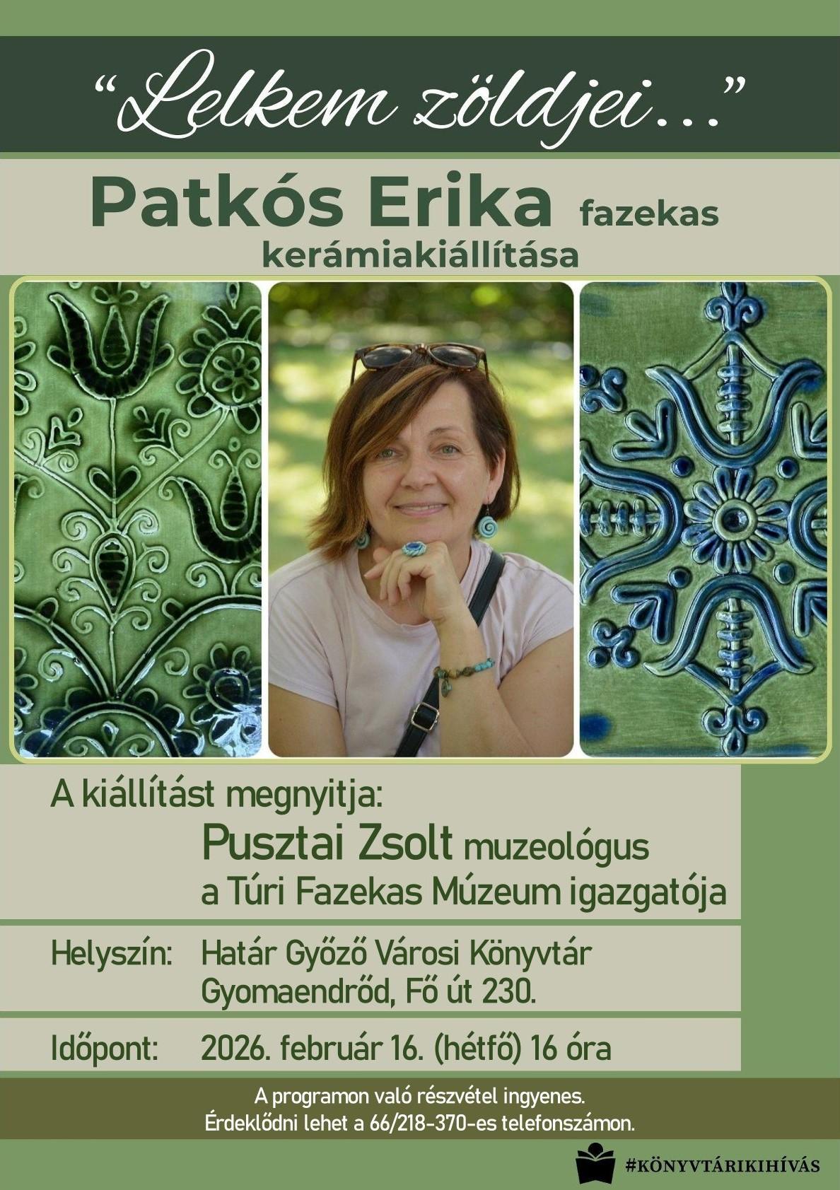 Szeretettel hívjuk és várjuk az érdeklődőket Patkós Erika mezőtúri fazekas kerámiakiállításának megnyitójára.