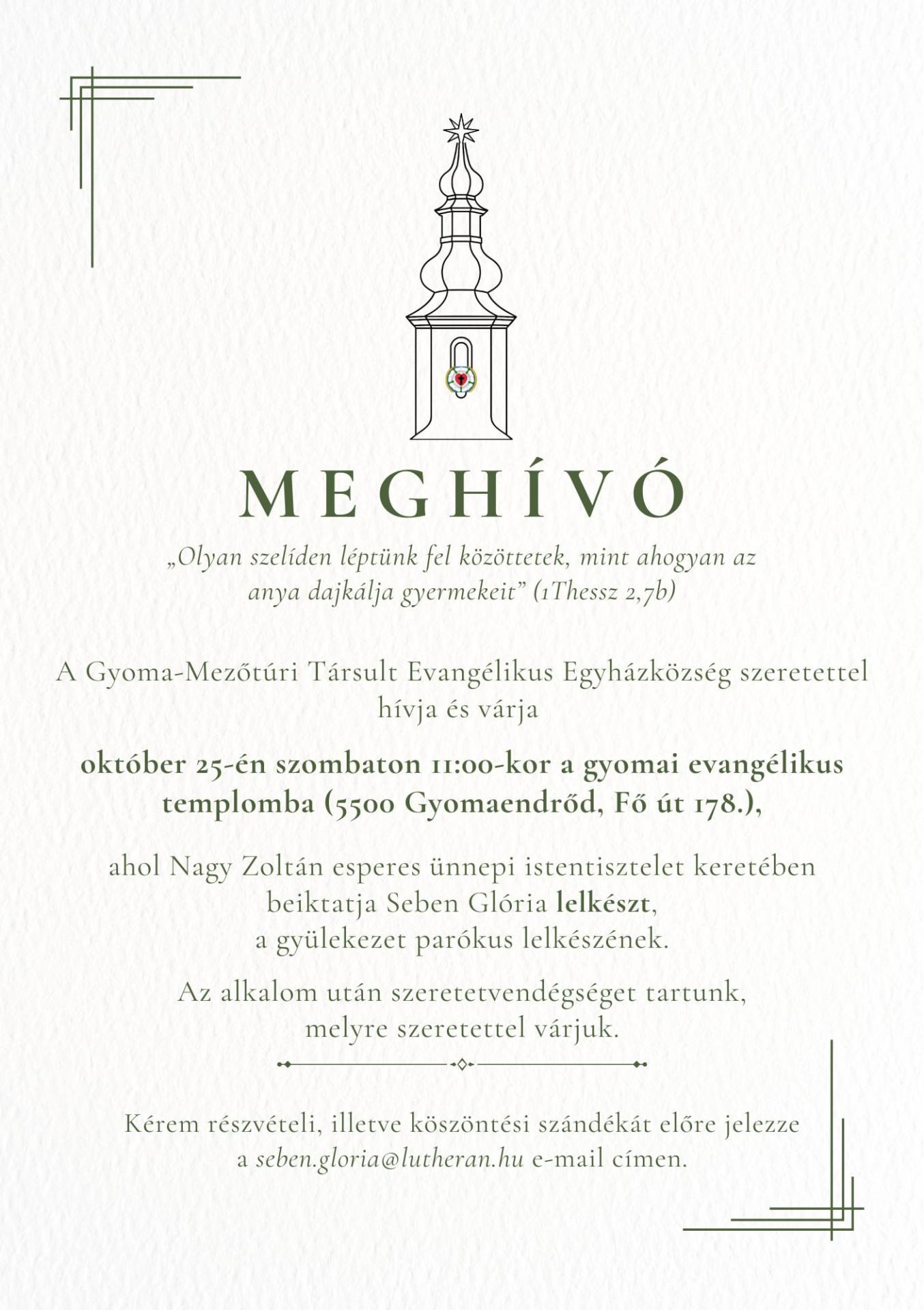 október 25-én szombaton 11:00-kor a gyomai evangélikus templomba (5500 Gyomaendrőd, Fő út 178.),