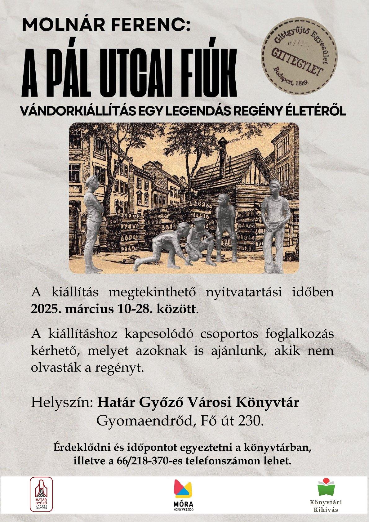 A Határ Győző Városi Könyvtárban 2025. március 10. és 28. között lesz megtekinthető a nagy sikerű vándorkiállítás. A tárlat a regényhez kapcsolódó érdekességeket, információkat tartalmazó tablókat, meghatározó tárgyakat – például a Gittegylet csomagja, Csónakos zsebének tartalma -, valamint az iskola világát idéző fotókat mutat be. A kiállításhoz – csoportok számára – játékos foglalkozás kérhető, melyet azok számára is ajánlanak, akik még nem olvasták a regényt.