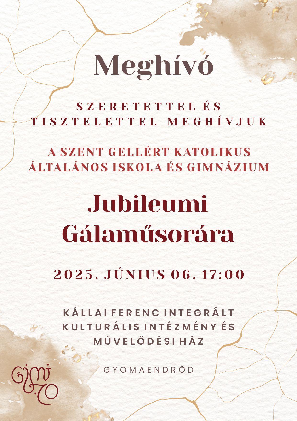 Szeretettel és tisztelettel meghívjuk a Szent Gellért Katolikus Általános Iskola és Gimnázium Jubileumi Gálaműsorára