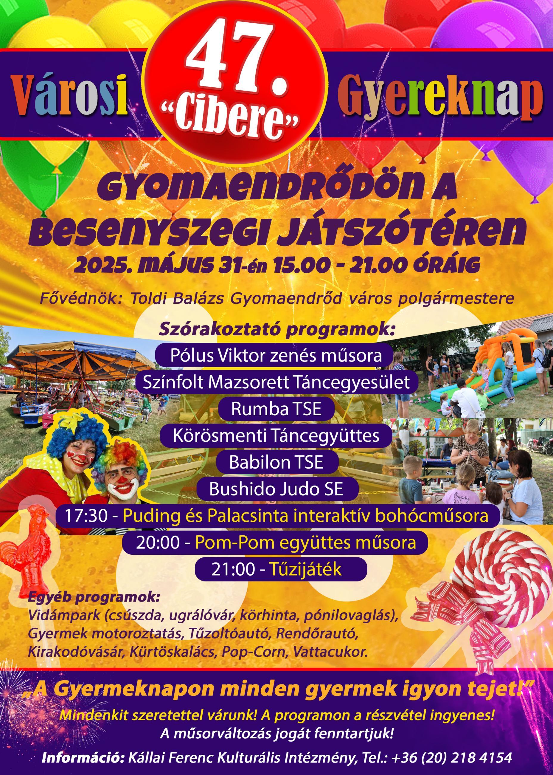 Vidámpark (csúszda, ugrálóvár, körhinta, pónilovaglás), Gyermek motoroztatás, Tűzoltóautó, Rendőrautó, Kirakodóvásár, Kürtöskalács, Pop-Corn, Vattacukor.