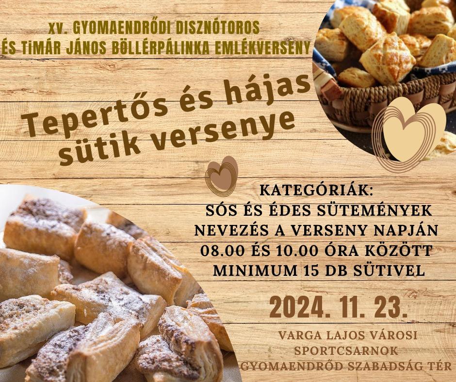 Kategóriák: Sós és ÉDES sütemények NEVEZÉS A VERSENY NAPJÁN 08:00 és 10:00 ÓRA KÖZÖTT minimum 15db sütivel.