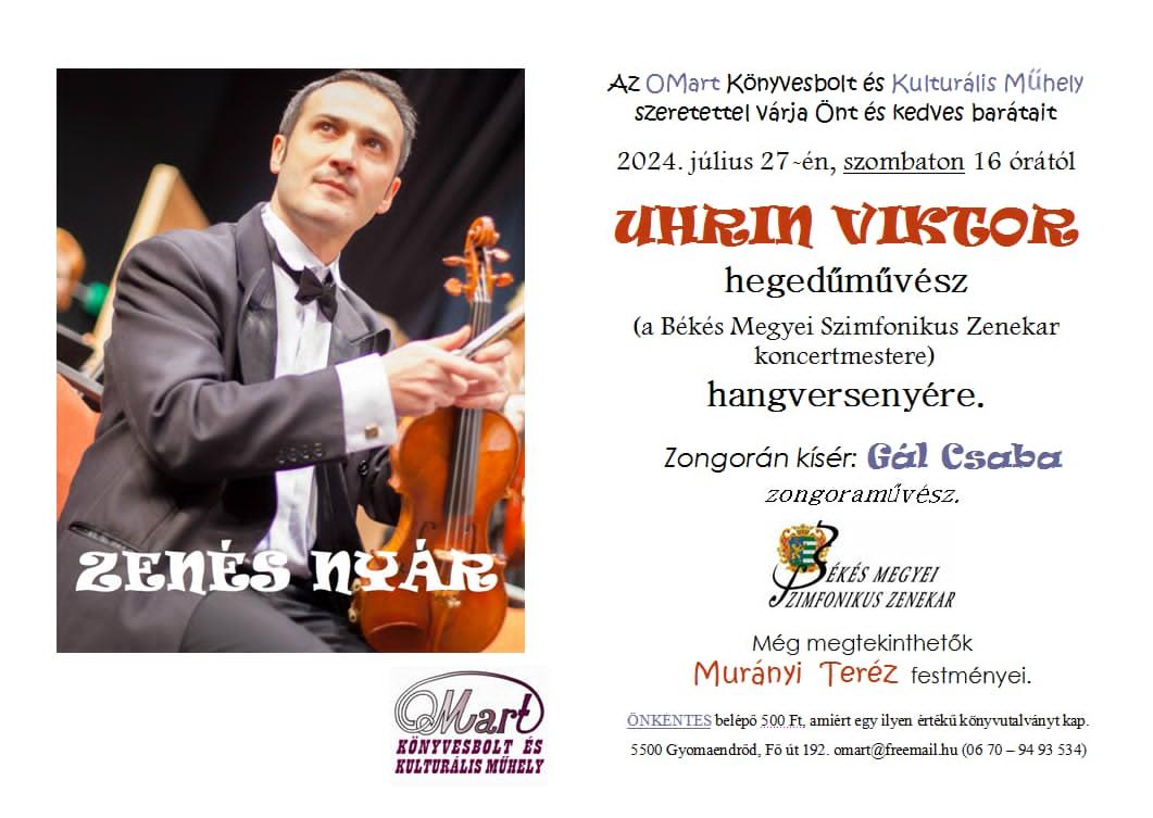 Az OMart Könyvesbolt és Kulturális Műhely szeretettel várja önt és kedves barátait 2024. július 27-én, szombaton 16 órától.
